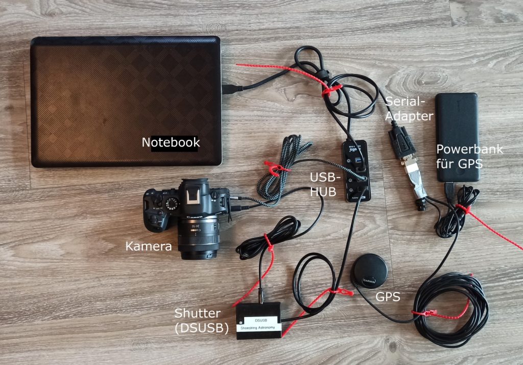 Für die automatisierte Aufnahme einer totalen Sonnenfinsternis mit Eclipse Orchestrator sind mindestens folgende Geräte notwendig: