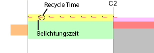 Im Visualizer wird die Belichtungszeit schwarz und die Recycle Time rot dargestellt.